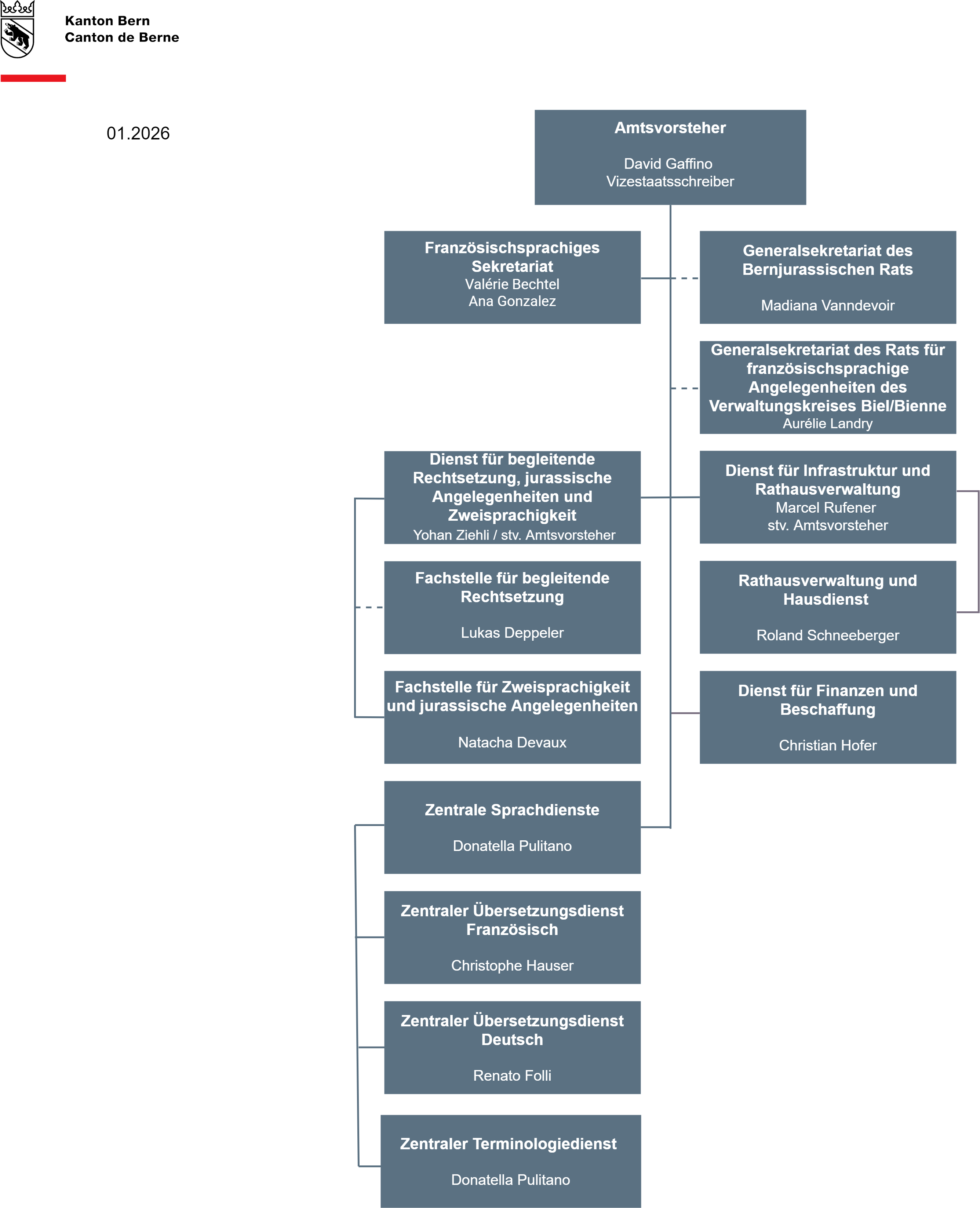 - administrativ zuständig für Dossiers im Zusammenhang mit den jurassischen Angelegenheiten und der Zweisprachigkeit