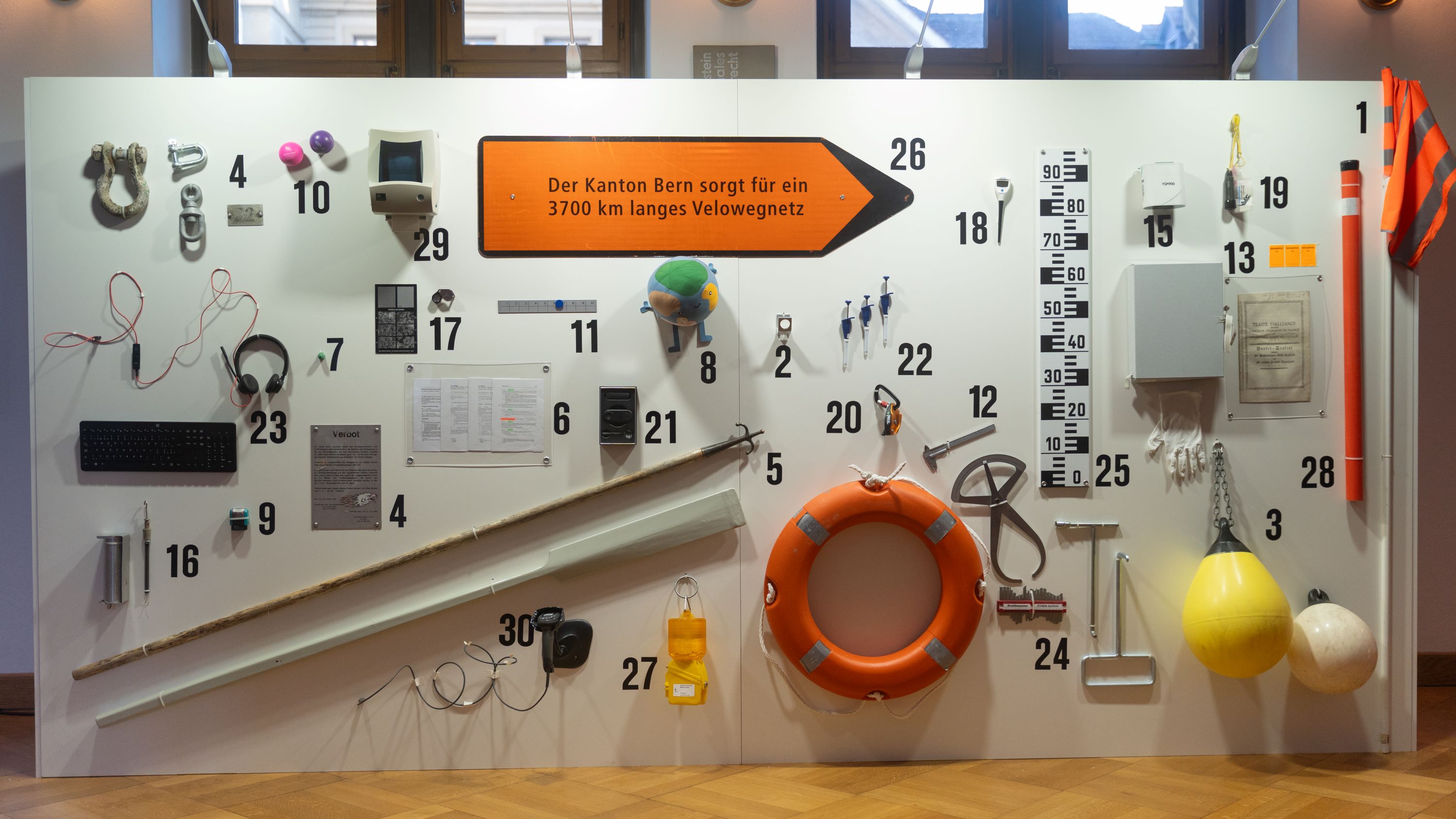 La mémoire du prix Nobel de la paix 1902, l’ancien conseiller d’État bernois Albert Gobat, est honorée par une œuvre de l’artiste Esther van der Bie. Elle surplombe l’escalier qui mène du hall à la salle du Grand Conseil. Son vernissage a eu lieu le 24.08.2021.