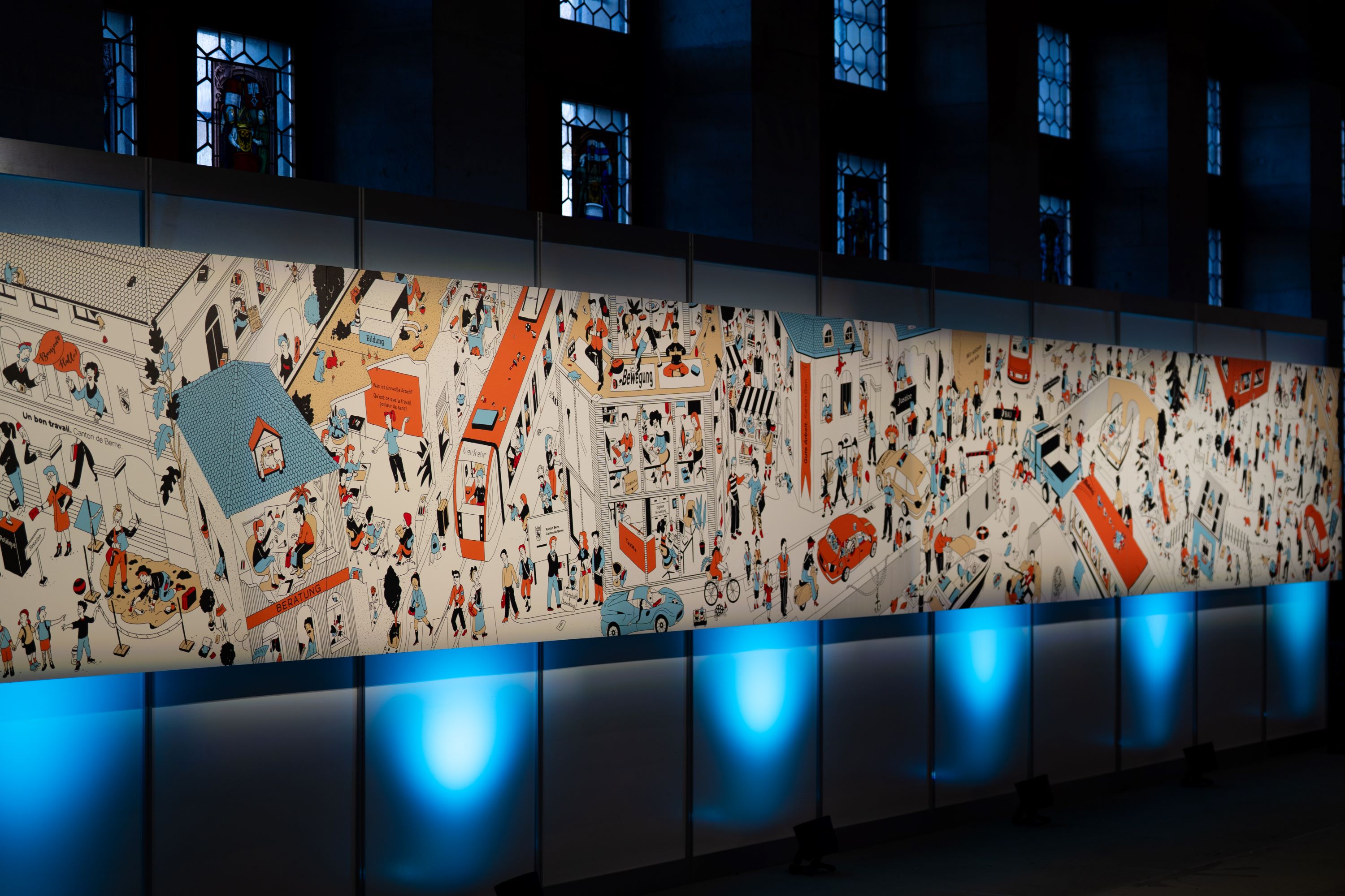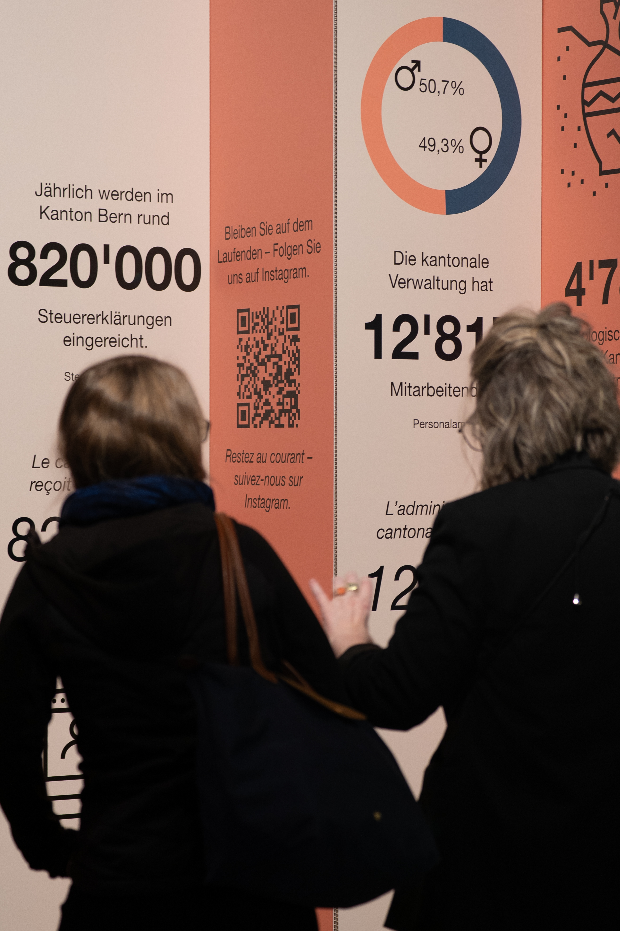 Le 12 décembre 1971 fut un moment historique pour la démocratie : c’est le jour où une claire majorité du corps électoral bernois a dit oui au suffrage féminin dans le canton de Berne. Ce jalon important pour l’égalité entre femmes et hommes fait l’objet d’évocations visuelles en différents endroits de l’Hôtel du gouvernement. Celles-ci mettent à l’honneur les premières politiciennes cantonales qui y siégèrent. Le jubilé a été célébré à l’Hôtel du gouvernement le 15 décembre 2021.